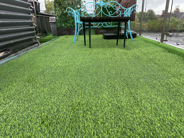 僅僅三個(gè)月前,屋頂那抹刺眼的綠意還透著廉價(jià)的新鮮感。然而,南方盛夏烈日的暴曬成為它不堪承受的酷刑。高溫之下,單薄的基底開始扭曲變形,脆弱的草絲紛紛斷裂、卷曲。那些塑料碎片竟悄無聲息地粉化剝落,仿佛下了一場(chǎng)細(xì)碎的“綠雪”。每一步都踩在扎腳的塵埃上,熱浪中裹挾著劣質(zhì)塑料的刺鼻氣味。